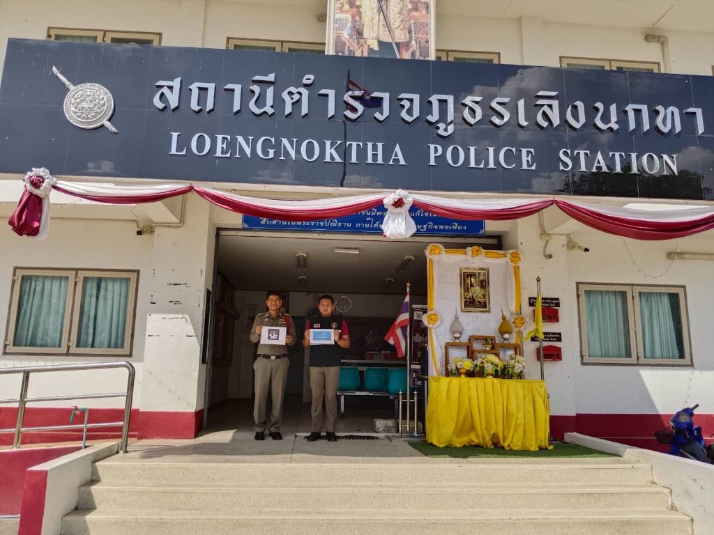 พ.ต.ต.ฉัตรชัย คุณศรี สวป.(ชส.)สภ.เลิงนกทา, ร.ต.อ.สุทิน ปาตาล รอง สวป.ฯ/ร้อยเวรจราจร ร.ต.ท.สหภพ เห็มค…