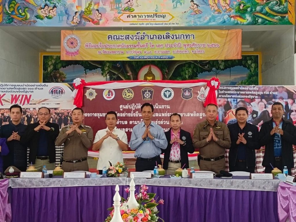 ร่วมต้อนรับ ณ ศูนย์ปฏิบัติการชุมชนบำบัดอย่างยั่งยืน ฯ (วัดเขมไชยาราม) สภ.เลิงนกทา จ.ยโสธร