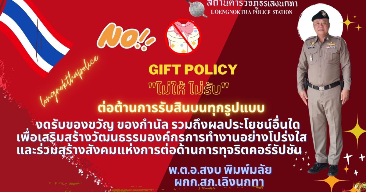 งดรับของขวัญ ของกำนัล รวมถึงผลประโยชน์อื่นใด เพื่อเสริมสร้างวัฒนธรรมองค์กรการทำงานอย่างโปร่งใส และร่วมสร้างสังคมแห่งการต่อต้านทุจริตคอรัปชั่น