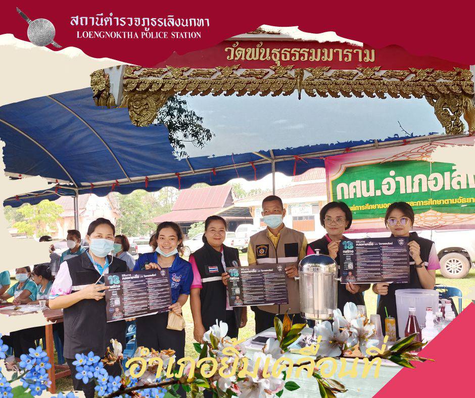 พ.ต.ท.บุญหลาย ศรีอุบล รอง ผกก.ป.ฯ พ.ต.ต.ปัญญา วรรณสุทธิ์ สวป.ฯ ได้มอบหมายให้ ร.ต.ต.เชิดพันธ์ แวงวรรณ รอง (ป)สภ.เลิงนกทา, ร.ต.ต.ธีรวัฒน์ ภูมิพัฒน์ สายตรวจตำบลบุ่งค้า ชุดปฏิบัติการชุมชนมวลชนสัมพันธ์ ตำรวจจิตอาสาเข้าร่วมประชา สัมพันธ์ การป้องกันภัยสื่อไซเบอร์ 18กลโกงของมิจฉาชีพ ใน โครงการอำเภอยิ้มเคลื่อนที่ ณ วัดพันธุธรรมมาราม บ้านป่าขี้ยา หมู่ 2 ต.บุ่งค้า อ.เลิงนกทา จ.ยโสธร โดยมี นายสุพิช สามารถ นายอำเภอเลิงนกทา เป็นประธานในพิธี