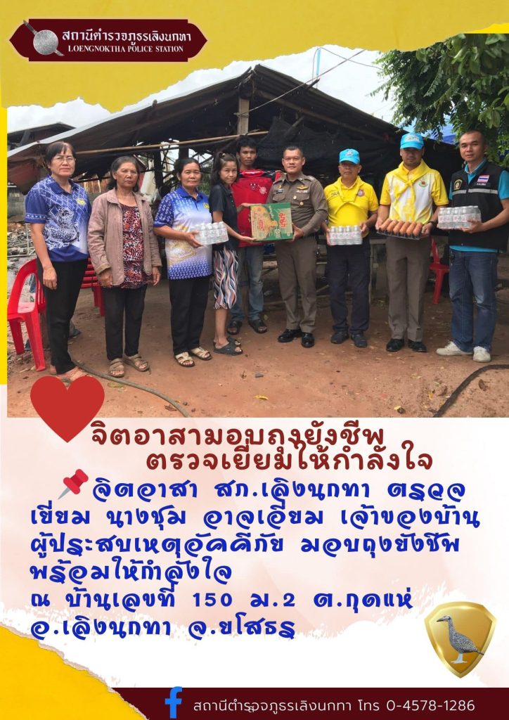 เนื่องด้วย เมื่อวันที่ 21 พ.ค.67 เวลา 06.30 น. ได้เกิดเหตุอัคคีภัย ในพื้นที่ฯ จึงได้เข้าตรวจเยี่ยม นางชุม อาจเอี่ยม เจ้าของบ้าน ผู้ประสบเหตุอัคคีภัย มอบถุงยังชีพ พร้อมให้กำลังใจ