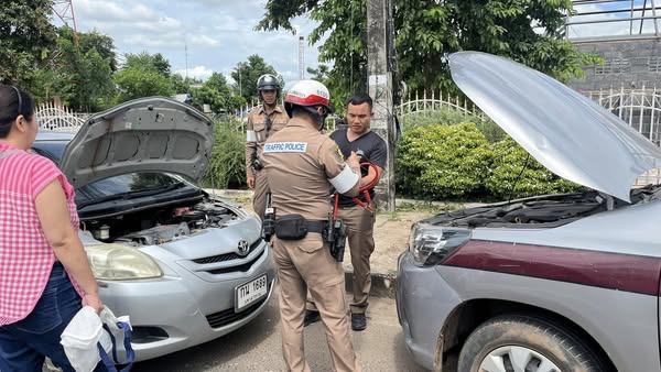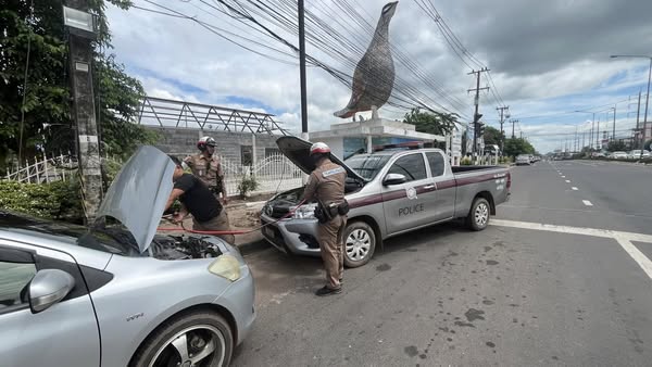 ร.ต.อ.ธัญญวิทย์ แก้วสุข รอง สวป.ฯ/ร้อยเวรจราจร พร้อมสายตรวจจราจร และสายฟ้าเขต1 ช่วยเหลือประชาชน รถสตาร์ทไม่ติด สามารถเดินทางต่อไปได้เป็นที่เรียบร้อย