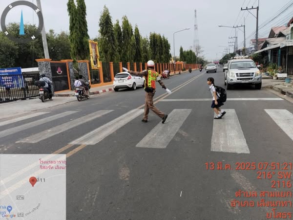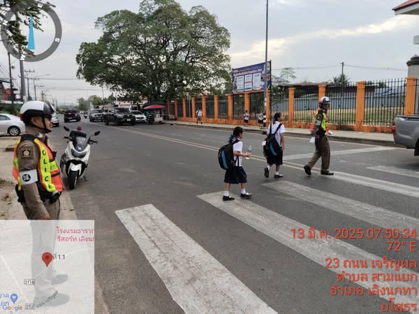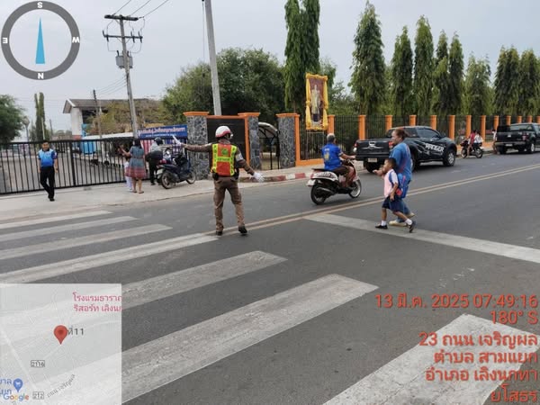 ร.ต.อ.ธัญญวิทย์ แก้วสุข รอง สวป.ฯ/ร้อยเวรจราจรพร้อมสายตรวจจราจร อำนวยความสะดวกการจราจรหน้าสถานศึกษาในพื้นที่
