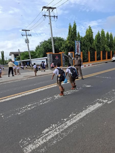 ร.ต.อ.ปรีดา แก้วโสภา รอง สว.จร.ฯ/ร้อยเวรจราจรพร้อมสายตรวจจราจร อำนวยความสะดวกการจราจรหน้าสถานศึกษาในพื้นที่