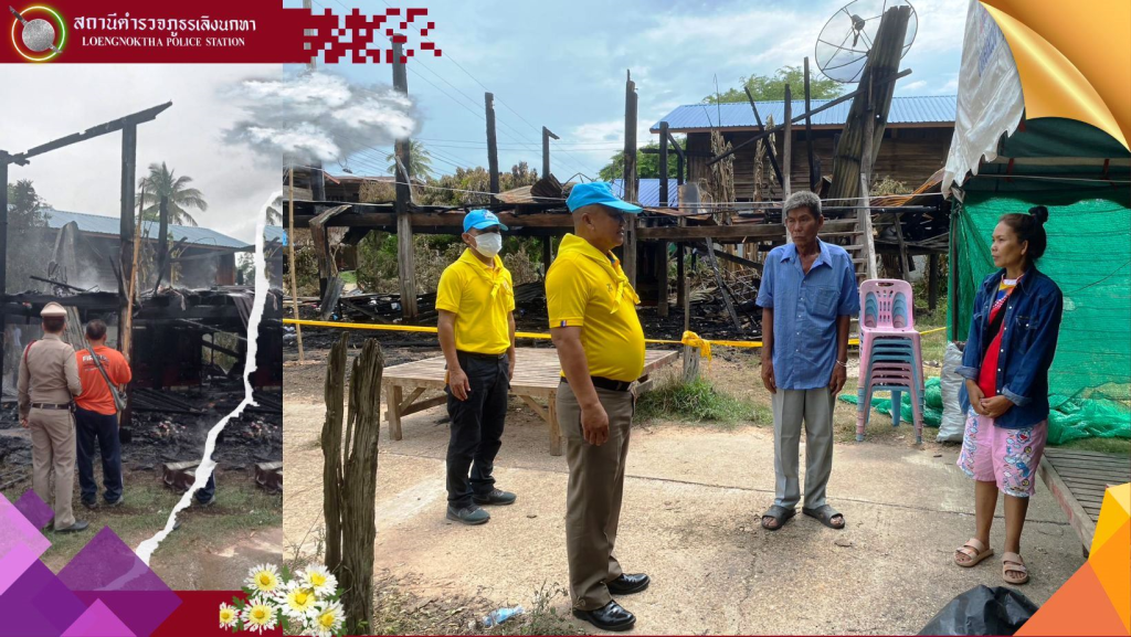 6 มิถุนายน 2566 เวลา 14.00 นาฬิกา พันตำรวจเอกสงบ พิมพ์มลัย ผู้กำกับการสถานีตำรวจภูธรเลิงนกทา พร้อมด้วยชุดจิตอาสา ได้มาตรวจที่เกิดเหตุพร้อมมอบสิ่งของเพื่อเป็นขวัญกำลังใจแก่ นายสุชาติ บุญขาว เลขที่ 55 ม.3 บ้านดอนม่วง ต.กุดแห่ อ.เลิงนกทา จ.ยโสธร ราษฎรผู้ประสพอัคคีภัย ไฟไหม้บ้านได้รับความเสียหายทั้งหลัง เมื่อวันที่ 5 มิถุนายน 2566