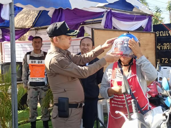 ได้มอบหมวกนิรภัยให้แก่ประชาชน ตามโครงการจิตอาสาจราจร รณรงค์การขับขี่ปลอดภัยสวมหมวกนิรภัย เพื่อลดอุบัติเหตุจราจรทางบก ในช่วงเทศกาลปีใหม่ พ.ศ.2568