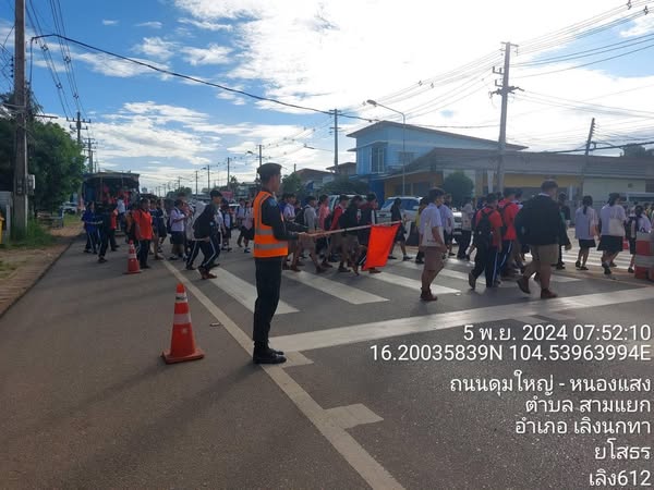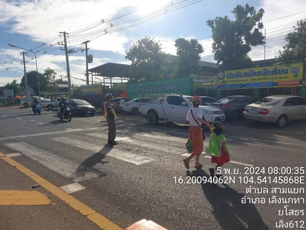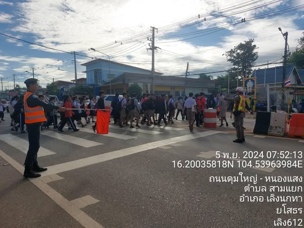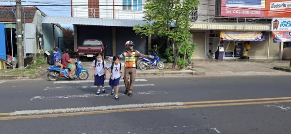 ร.ต.อ.ปรีดา แก้วโสภา รอง สว.จร.ฯ/ร้อยเวรจราจร พร้อมสายตรวจจราจร อำนวยความสะดวกการจราจรหน้าสถานศึกษาในพื้นที่
