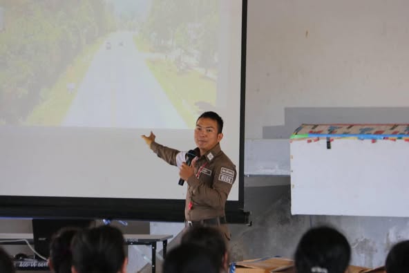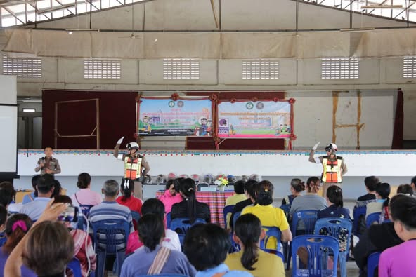 ให้ความรู้เกี่ยวกับกฎหมายจราจรเบื้องต้น การใช้รถใช้ถนนอย่างปลอดภัยและการป้องกันอุบัติเหตุ พร้อมแจกหมวกนิรภัยให้กับผู้เข้าร่วมรับการอบรมใช้สวมใส่ในการขับรถจักรยานยนต์