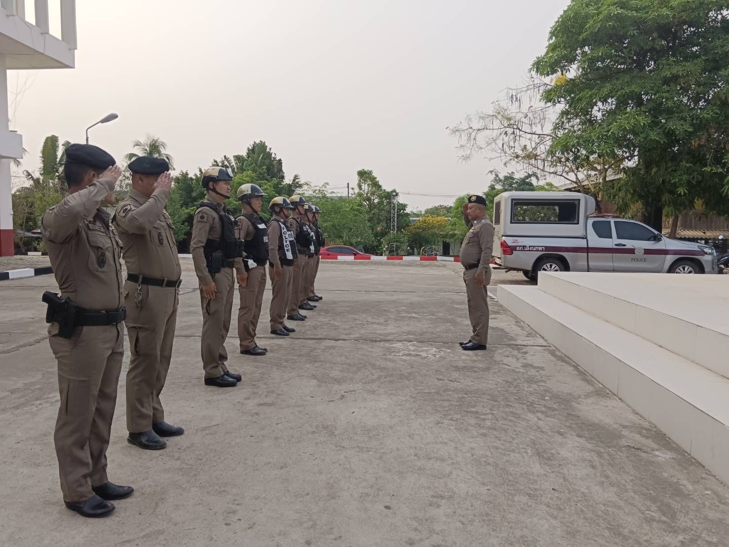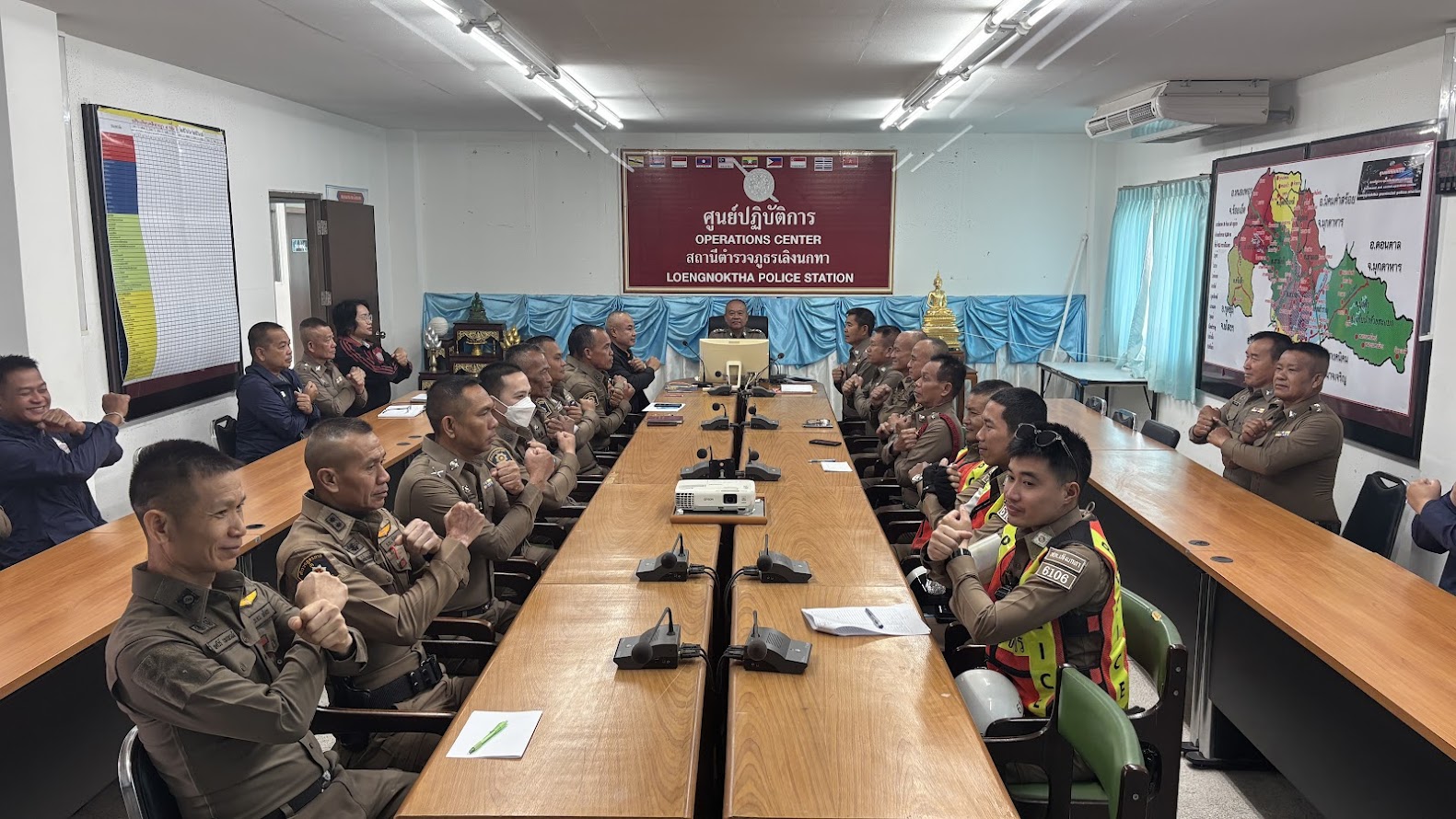 ผกก.ฯ เข้าแถวแจกจ่ายเสื้อที่ได้รับมอบจาก ผบก.ภ.จว.ยโสธร พร้อมอบรมคุณธรรม จริยธรรมตำรวจก่อนปฏิบัติหน้าที่